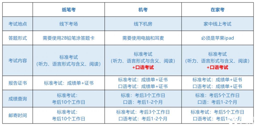 小托福线下考试只有标准考试(包含听力、语义和阅读),但是机考和在家考试增加了口语考试的内容。