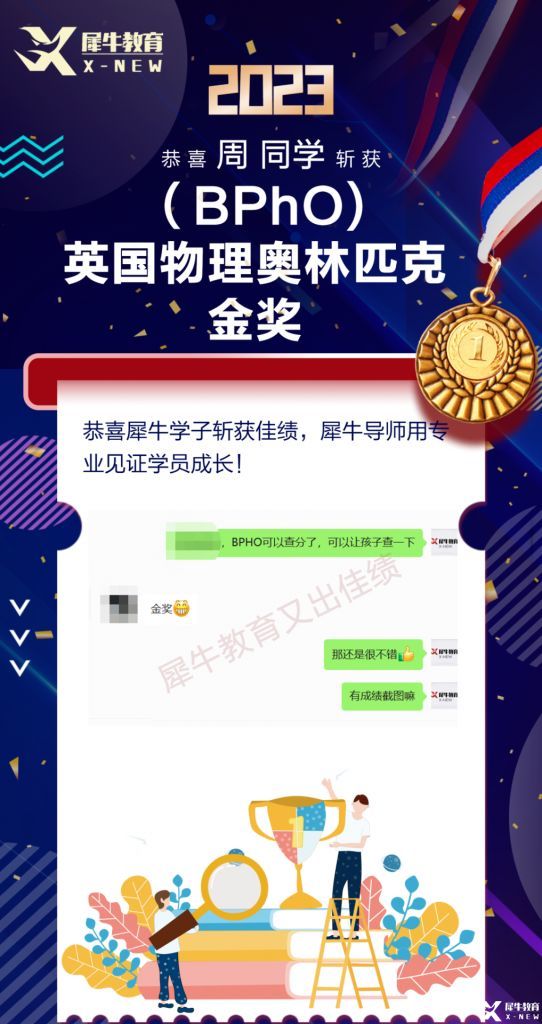 犀牛已经通过富有经验的指导帮助竞赛学子拿下了BPhO金牌与物理碗全球TOP名次。犀牛竞赛班针对补齐校内知识,拓展竞赛知识,提高解题能力等不同需求。犀牛BPHO物理竞赛培训班正在火热招生中,犀牛竞赛导师带领你突击冲刺。