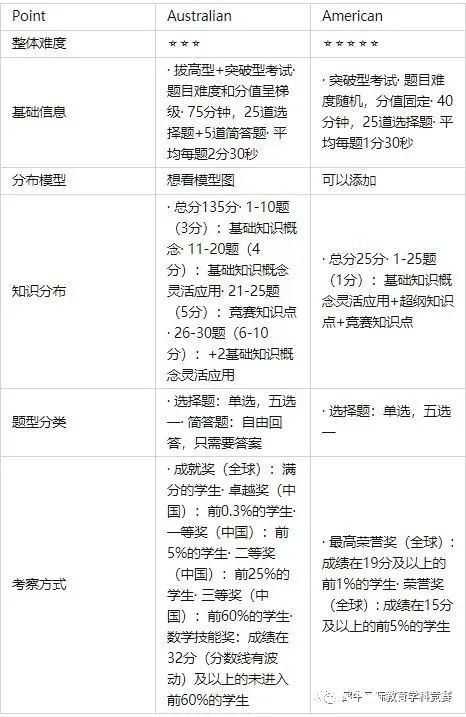 澳大利亚数学竞赛(Australian Mathematics Competition),简称澳洲AMC。它是于1978年由著名数学家Peter O’Halloran创立的Australian Mathematics Trust(AMT)澳大利亚数学联合会全权主办,是全球较大基于学校数学竞赛。