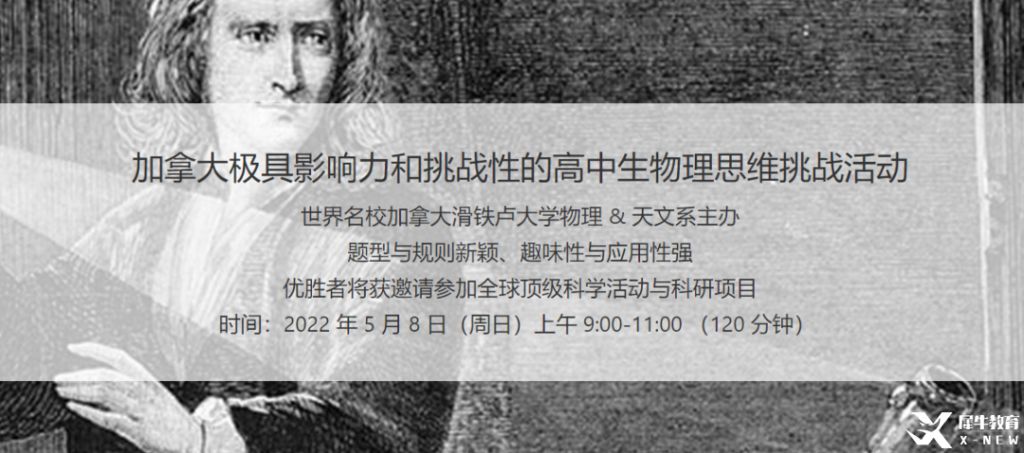 SIN竞赛,即加拿大SIN滑铁卢牛顿物理竞赛,由滑铁卢大学物理系主办,是国际上历史悠久、具有影响力的物理竞赛,旨在激发高中生对物理的兴趣,适合高中生参加。