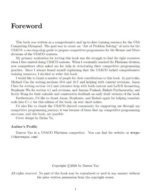 这本书的目的是以两种方式为算法 决问题首先,它试图填补现有书籍中的一些漏洞。算法问题的许多主题在文献中根本缺乏任何处理--至少在英语书籍中是这样。相反,大部分内容只记录在博客文章和各种比赛问题的方案中。