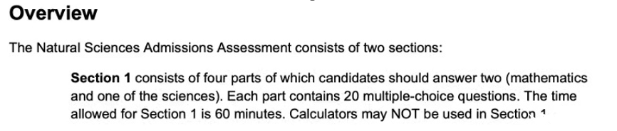 Section 2 由三个部分组成,其中 Part X 考察物理,Part Y 考察化学,Part Z 考察生物。每个部分 20 道选择题。申请者需要从物理、化学、生物中选择一个方向作答,该部分时长为 60 分钟。