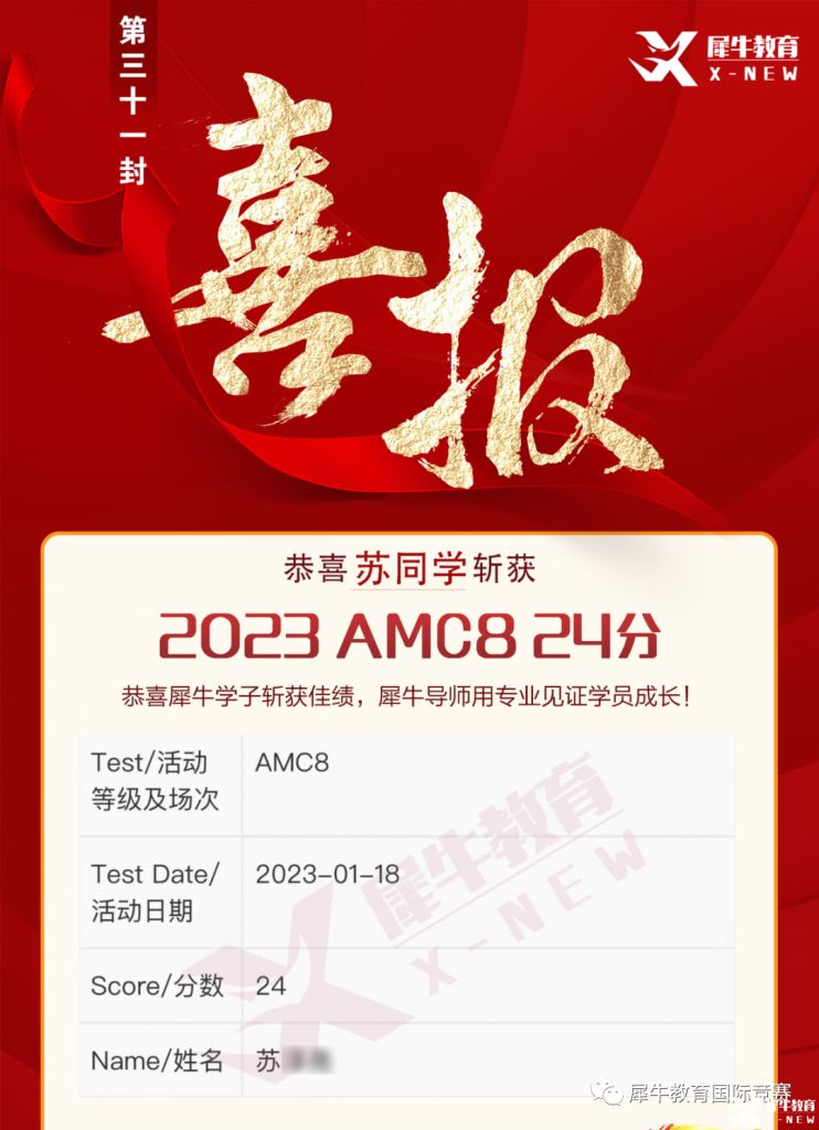 2023年犀牛AMC8学员成绩高分25分,24分频现!!!
