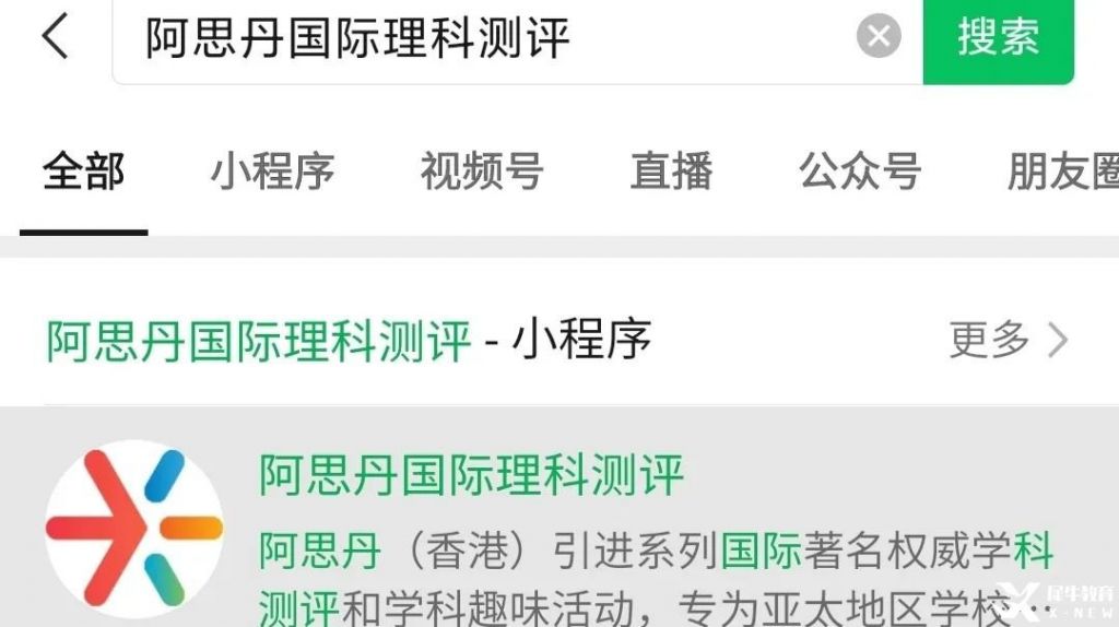 注:同时请通过vx搜索“阿思丹国际理科测评”服务号及时关注,此后将通过该服务号发送重要服务通知。