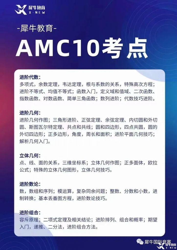 根据往年情况来看,2023年AMC10的考试时间会在11月,近几年AMC10的难度逐年增加,不是单线条上一个课/做几套题就可以考出高分,而是切实需要科学备赛。整理了AMC10知识点总结,冲刺前5%必备!