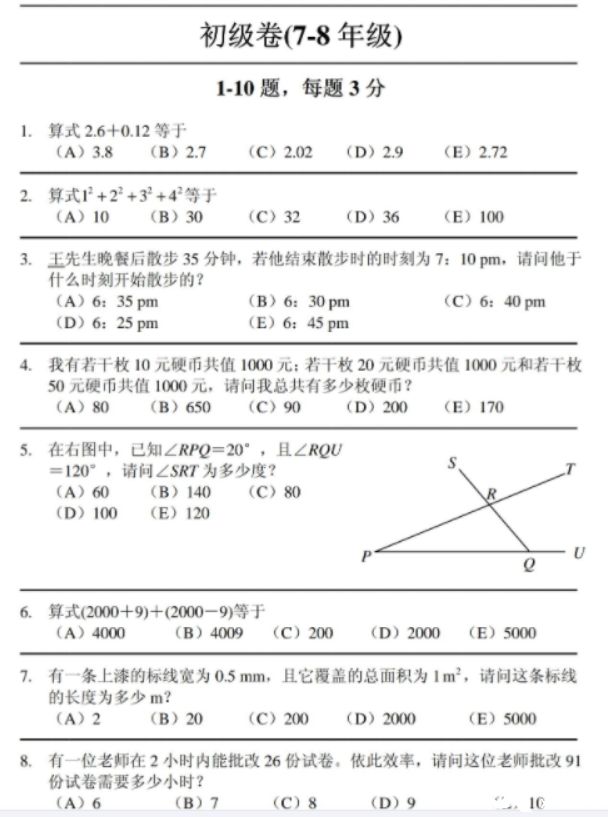 考试注重数学思维,轻计算。所有题目的计算不适用计算器都可以轻松解答,主要是考数学概念和数学思维方式。