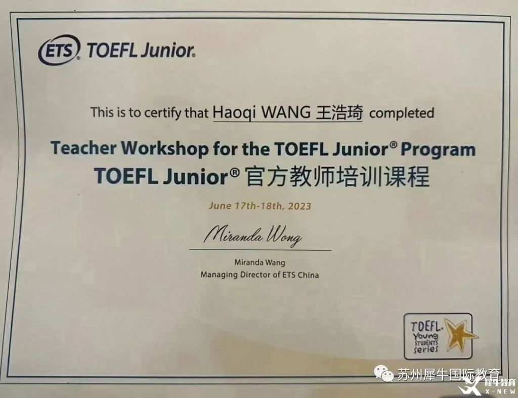 犀牛的全职教师获得“托福青少测试官方培训师”申请资格,评估通过后获得官方认证
