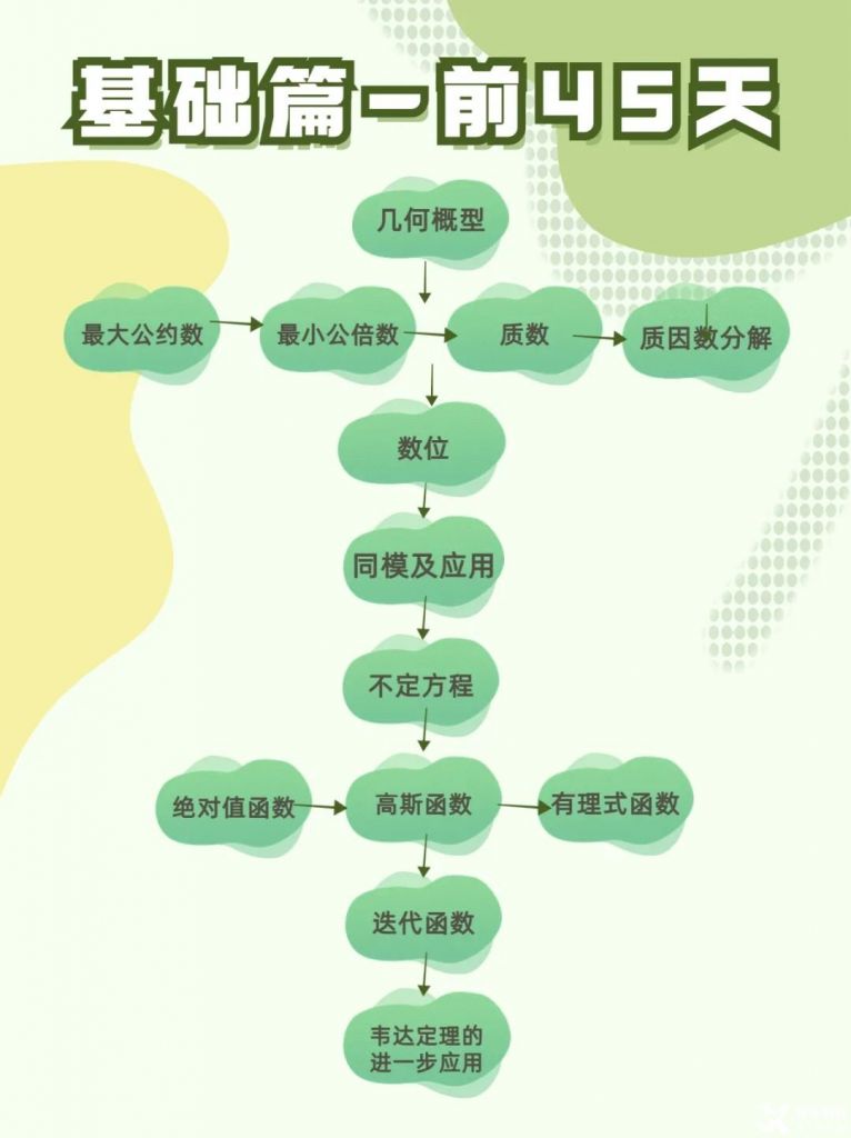 这个阶段打好基础很重要,将整个AMC10考察的基础知识按照逻辑梳理一遍,达到后期做题时能够准确识别考察内容,找到对应知识点。