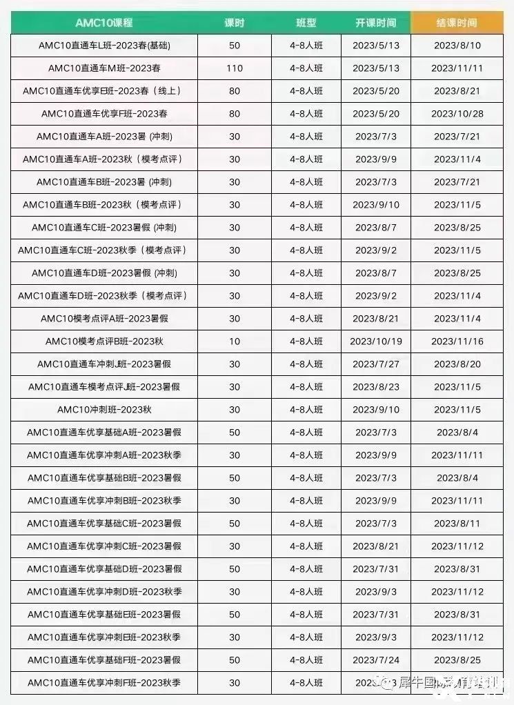 2023年AMC10竞赛基本安排!暑期AMC10培训班课有吗?AMC10备考在即,需要大家重点关注的学习要点有哪些内容呢?AMC10试题难度是如何分布?北京上海深圳暑期AMC10培训班课还有没有?犀牛AMC10暑期班课程是怎么安排的?下面一起来详细介绍下。