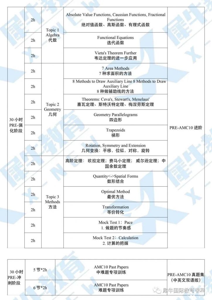 | Pre-AMC10基础2班 | 30 | 8月 | 暑假+周日下午 | |