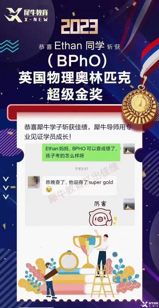 犀牛通过富有经验的指导帮助竞赛学子拿下了BPhO金牌与物理碗全球TOP名次。有时间和精力的同学建议将下半年的BPhO和明年上半年的物理碗一起准备,提升竞争力!但是竞赛比拼的就是实力!切勿草率轻敌!