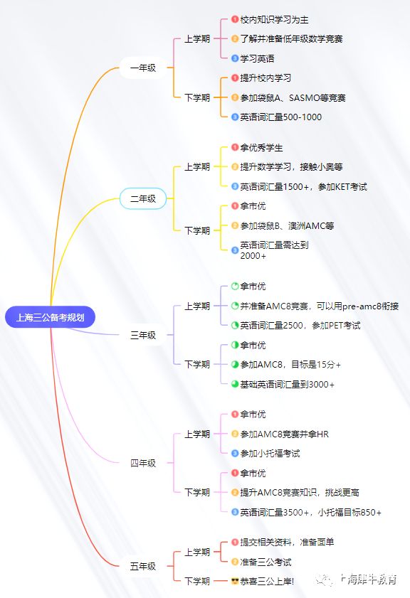 想上上海三公,不同年级应该怎么准备 ?学习目标多少才可以?