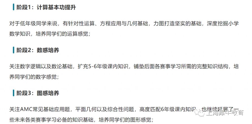 看到这,大家是不是觉得AMC8竞赛题对小学生来说还是有难度的,没关系,犀牛的AMC竞赛培训高分率是90%以上,我们的课堂学习路径分为AMC8课程和PreAMC8课程,帮助犀牛学员一步一个脚印,稳扎稳打冲奖AMC竞赛!有课程需求的家长可以继续看下去哦!
