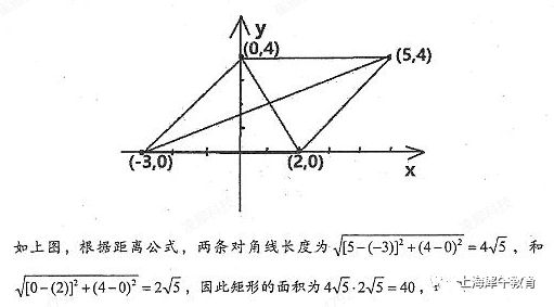 将矩形4条边的中点连接起来后,可以看到,形成的4个直角三角形都是全等三角形(根据SAS),因此所形成的中间四边形是个菱形。菱形的2条对角线分别是矩形的长和宽。所以下面我们分别算出菱形对角线长度即可。