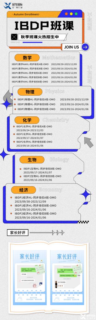 犀牛国际课程IB秋季班为学生提供 IB经济、IB数学、IB物理、IB化学、IB生物、IB中文、IB英语、IB计算机 等科目课程培训,课表已出,详细课程内容欢迎在线咨询了解~
