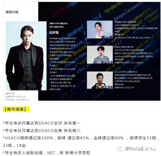 犀牛USACO竞赛开设班型有USACO基础班、USACO铜升银、USACO银升金、USACO金升铂金等。