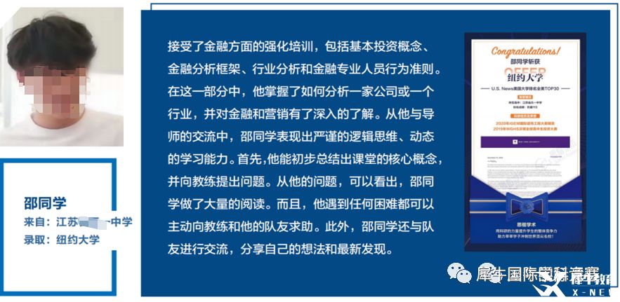竞赛涉及团队交流写作、风险管理、商业分析以及产业投资分析等多方面考核,是目前为止面向高中生对国际项目中投资方向更具权威以及更具含金量的活动