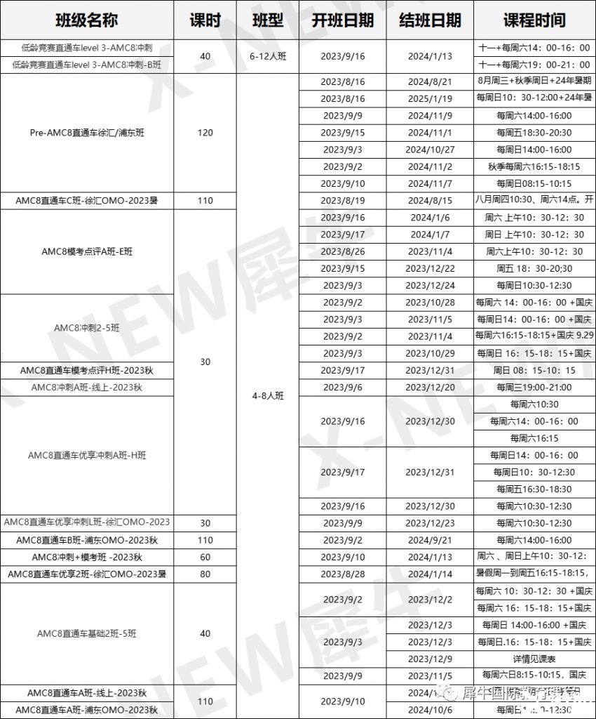 犀牛开设AMC8竞赛培训课程,帮助学生在AMC8准备初期,打好基础,全面掌握考点,助力孩子冲高分拿奖!