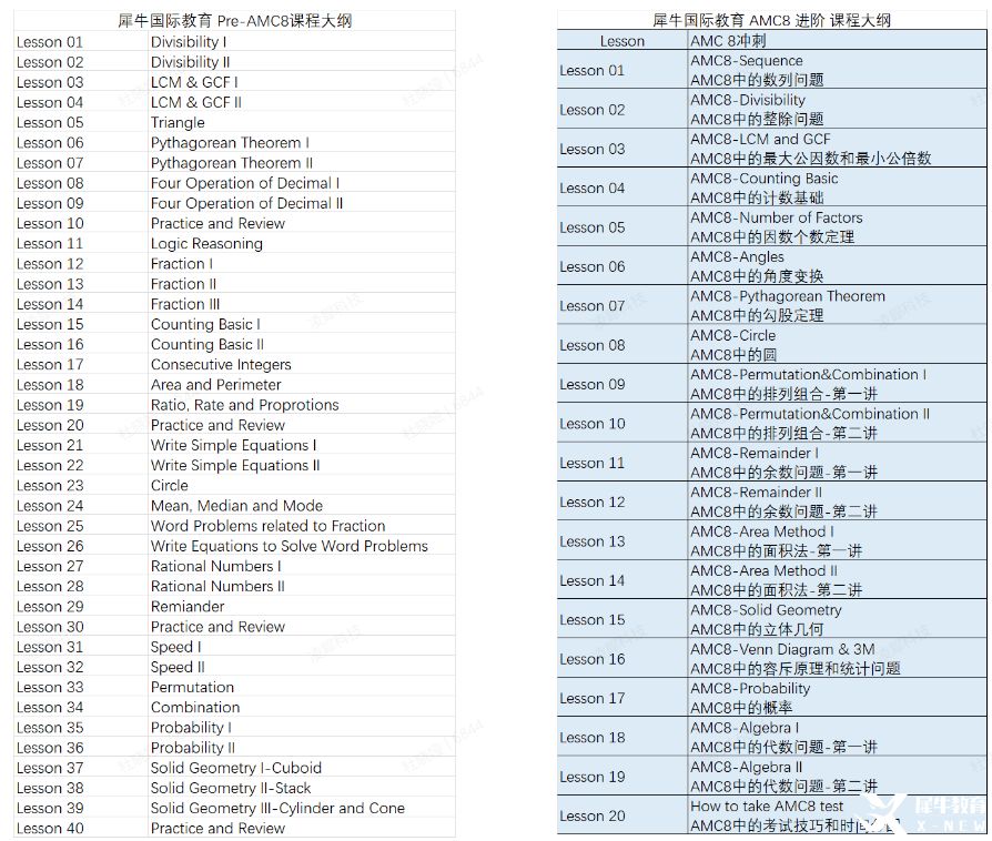 如果您的孩子足够优秀,在三年级已经掌握了部分初中的知识内容,推荐参加犀牛AMC8直通车课程。