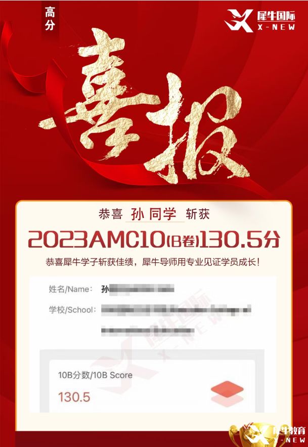 另外两个高分来自在AMC10B卷中取得145.5分的李同学,和在AMC12数学竞赛B卷中取得145.5分的张同学