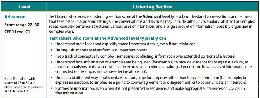 能拿到托福听力高级22分-30分的同学需要做到以下几个方面: