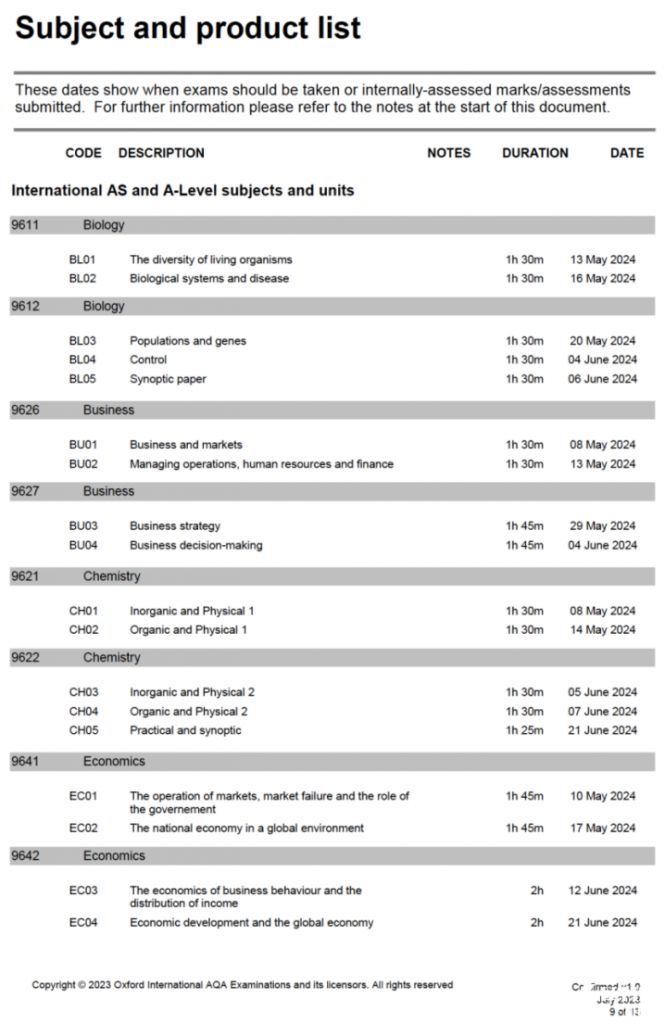Edexcel官方已更新了2024年国际版1月和5月A-Level和IGCSE的考试时间。