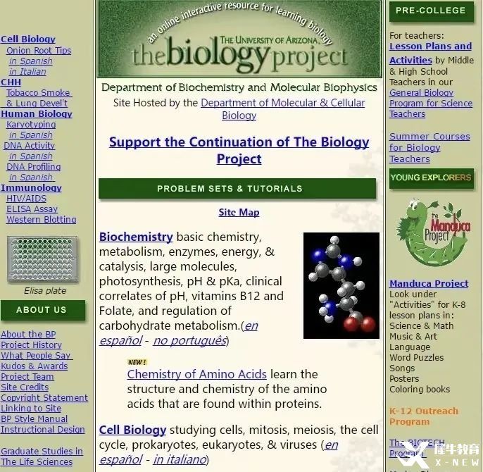 是美国利桑那大学的生物学项目,非常适合高中阶段的国际生去学习,上面有非常好的动画、教程和在线测试。