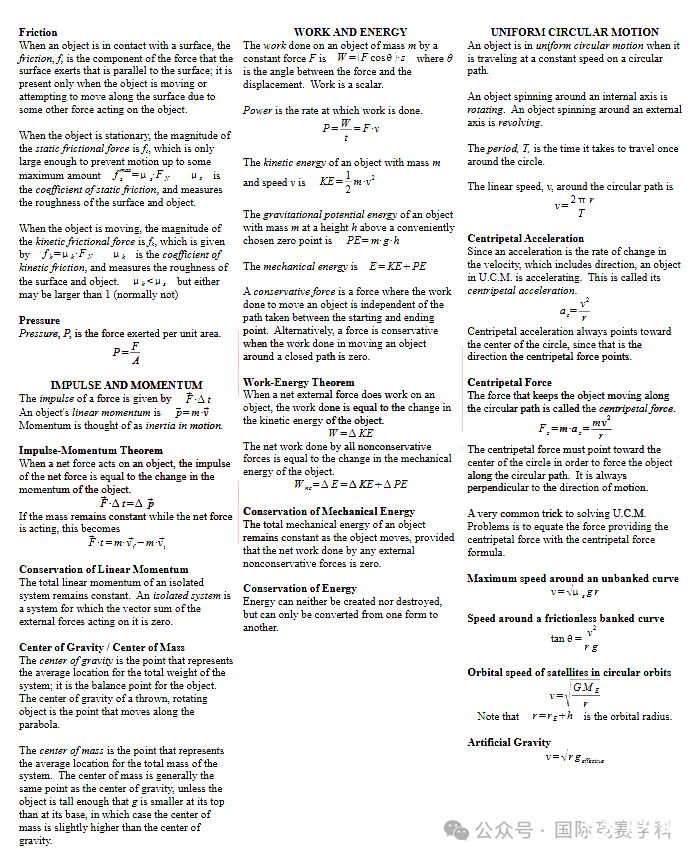 ▶力学:测量学基础、运动学计算、牛顿三定律、动量、冲量、动能、能量转换、圆周运动、流体力学等;
