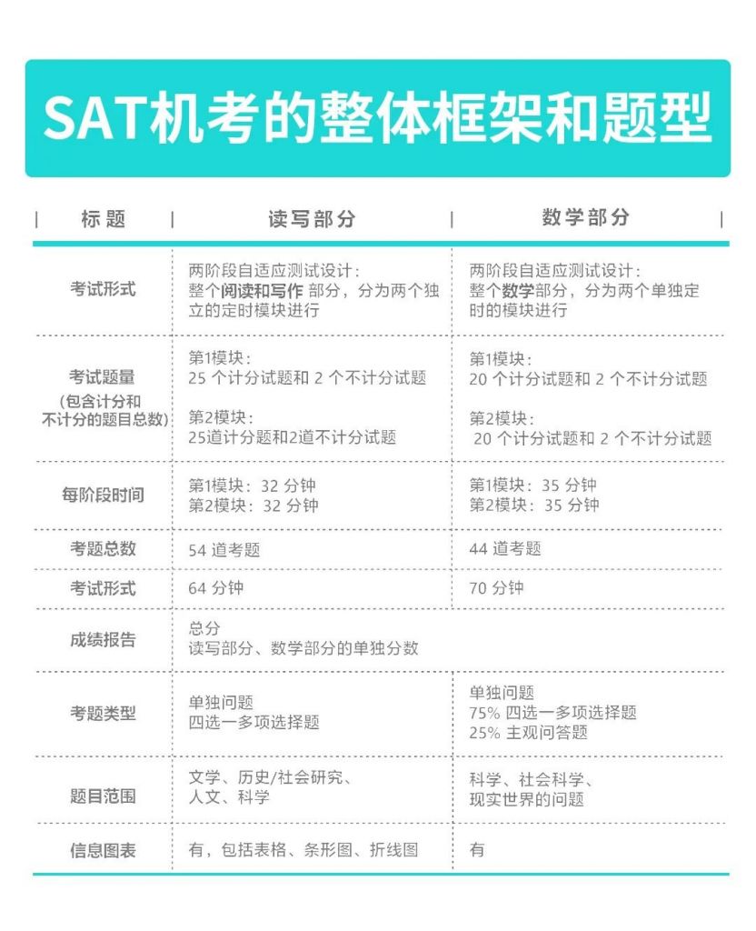 考试分为两个大部分:阅读和写作+数学,每个部分各占800分。与纸笔考试相比,机考的题量较少,因此答题时间缩短为2小时14分钟。