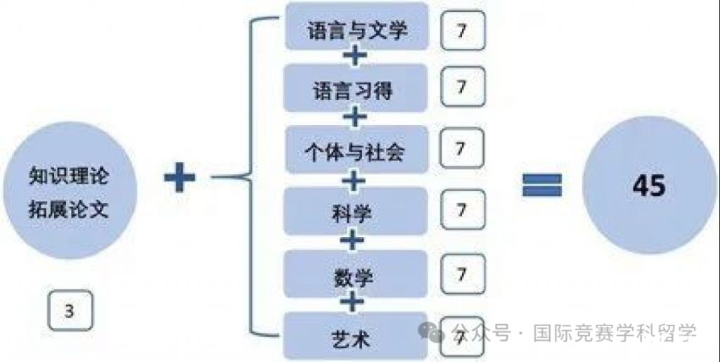IA 和 EA 的比例大概是 7:3 或者是 8:2,视具体学科而定。最后再加个 TOK,EE 的3分也就组成了最后的45 分。