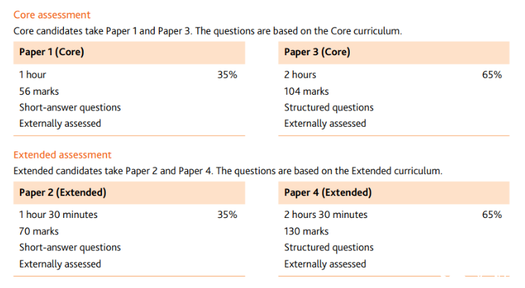 IGCSE数学的考试设置和国内数学考试也不一样。像中考高考的数学都是以一张卷子的形式进行考核,而IGCSE数学会有多张试卷,CIE考试局的IG数学core和extended分别有不同的考卷,需要学生分两次考试完成,而且IGCSE数学考试的题量也大,考试时间因此更长一些。