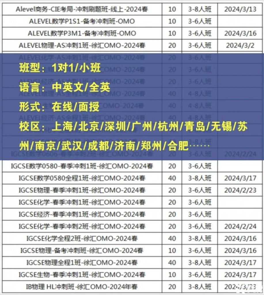 我们开设IGCSE/ALEVEL一对一、小班,根据学生的学习规律,推出预学,同步,冲刺,脱产多个班型,适合不同基础学生备考。