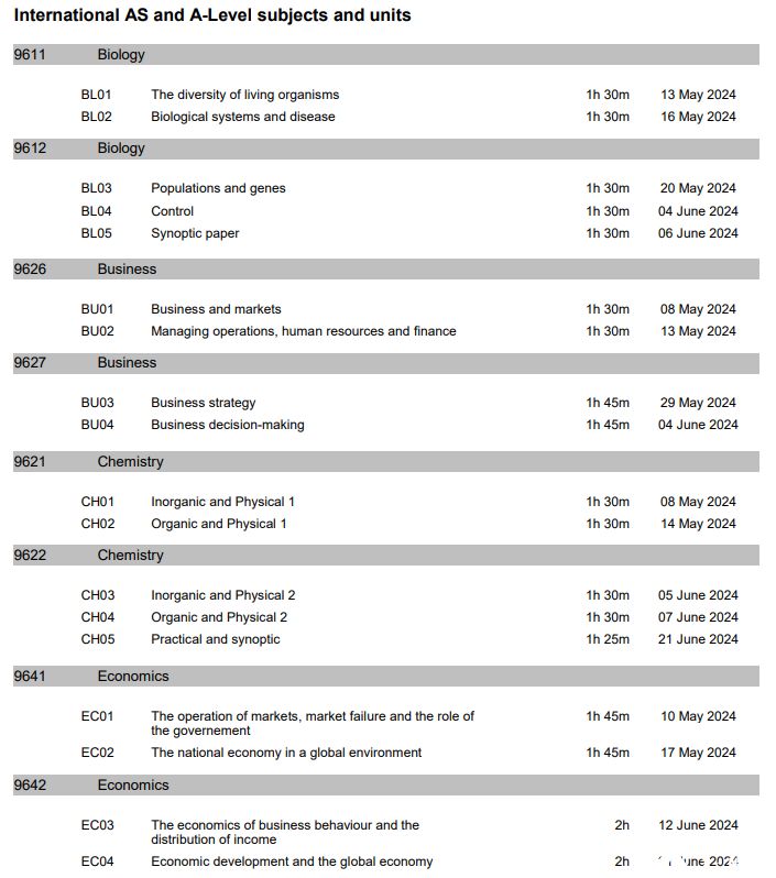 AS & A Level(晚报名截止日期):2024年4月13日,17:00(北京时间)