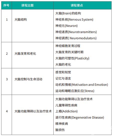 根据Brain Bee考纲设置课程模块,包括大脑的基础知识、大脑的发育和老化、大脑控制与生命活动、大脑功能障碍及治疗技术、神经科学研究方法及最新研究动态、课程复习与答疑等6大模块。