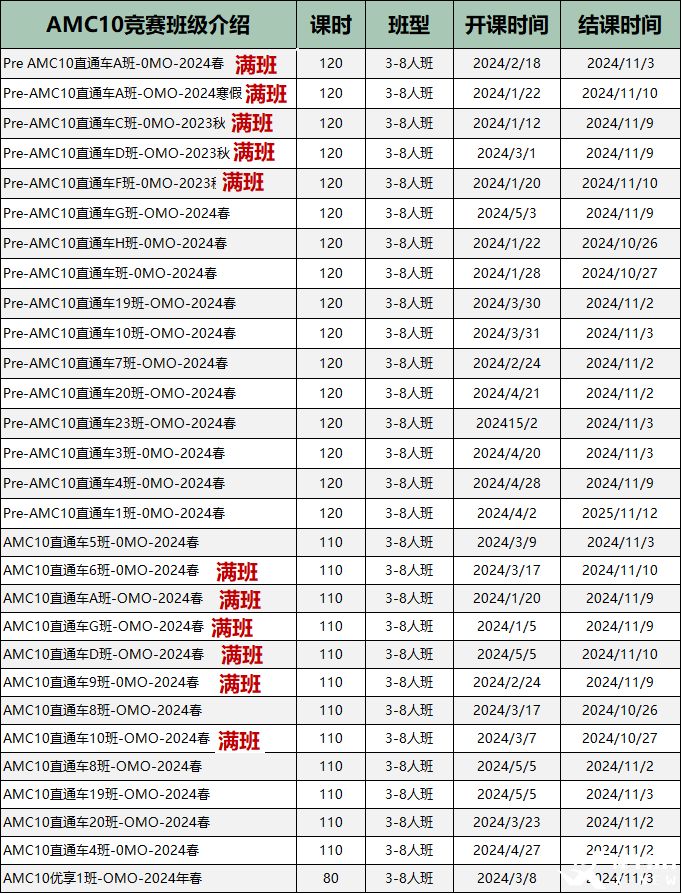 针对2024年AMC10竞赛考试,开设有全年直通车课程