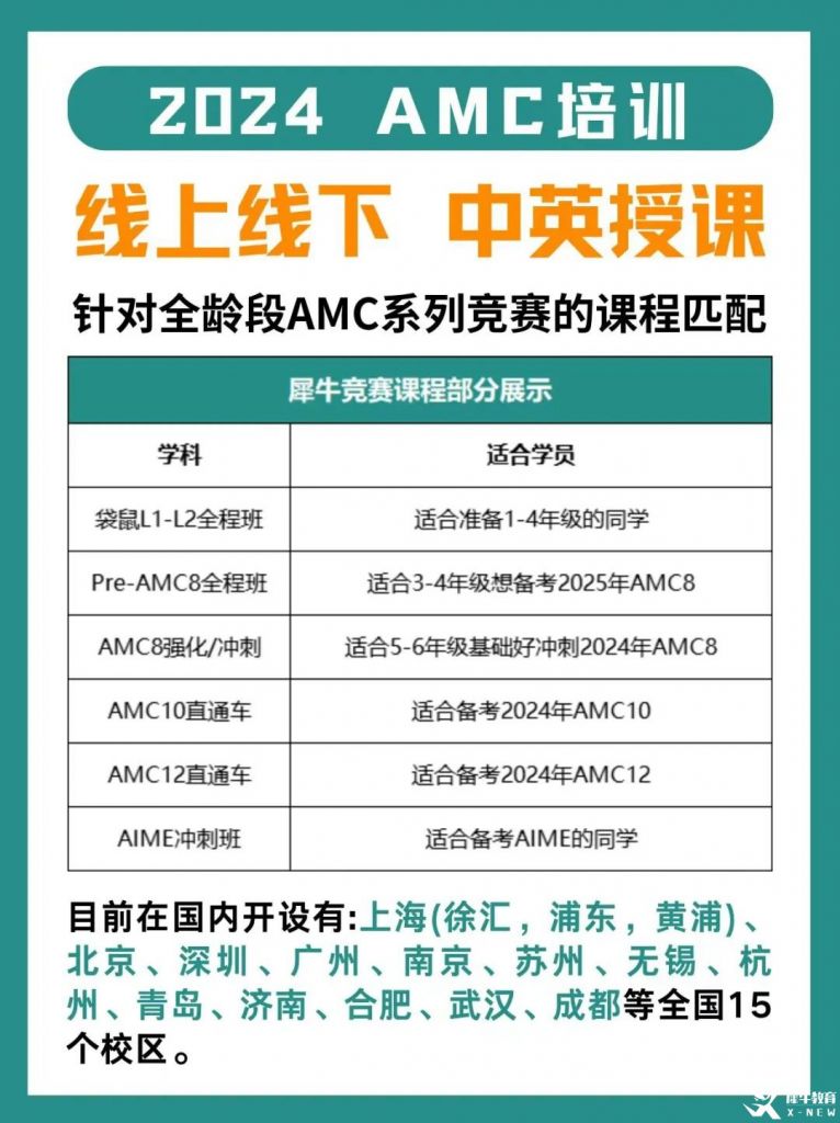 犀牛各校区的AMC8竞赛课程,欢迎在线咨询了解详情