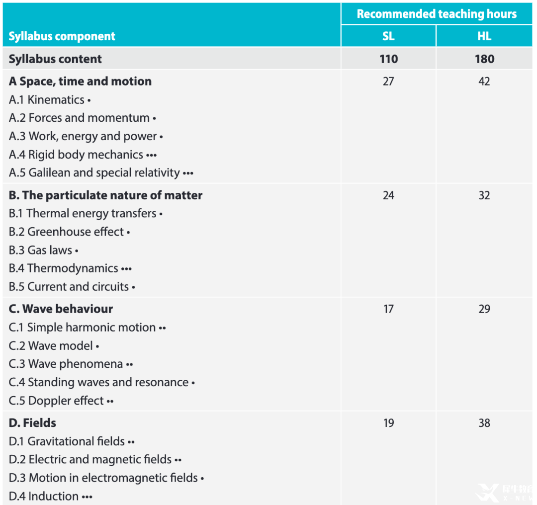 已经从课程中移除了相对论、工程物理、成像以及天体物理学的内容,并将某些SL级别的内容纳入到了HL级别课程。