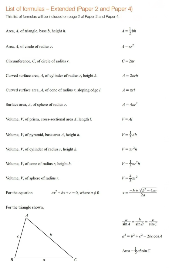 CAIE官方给出的IG数学0580公式清单