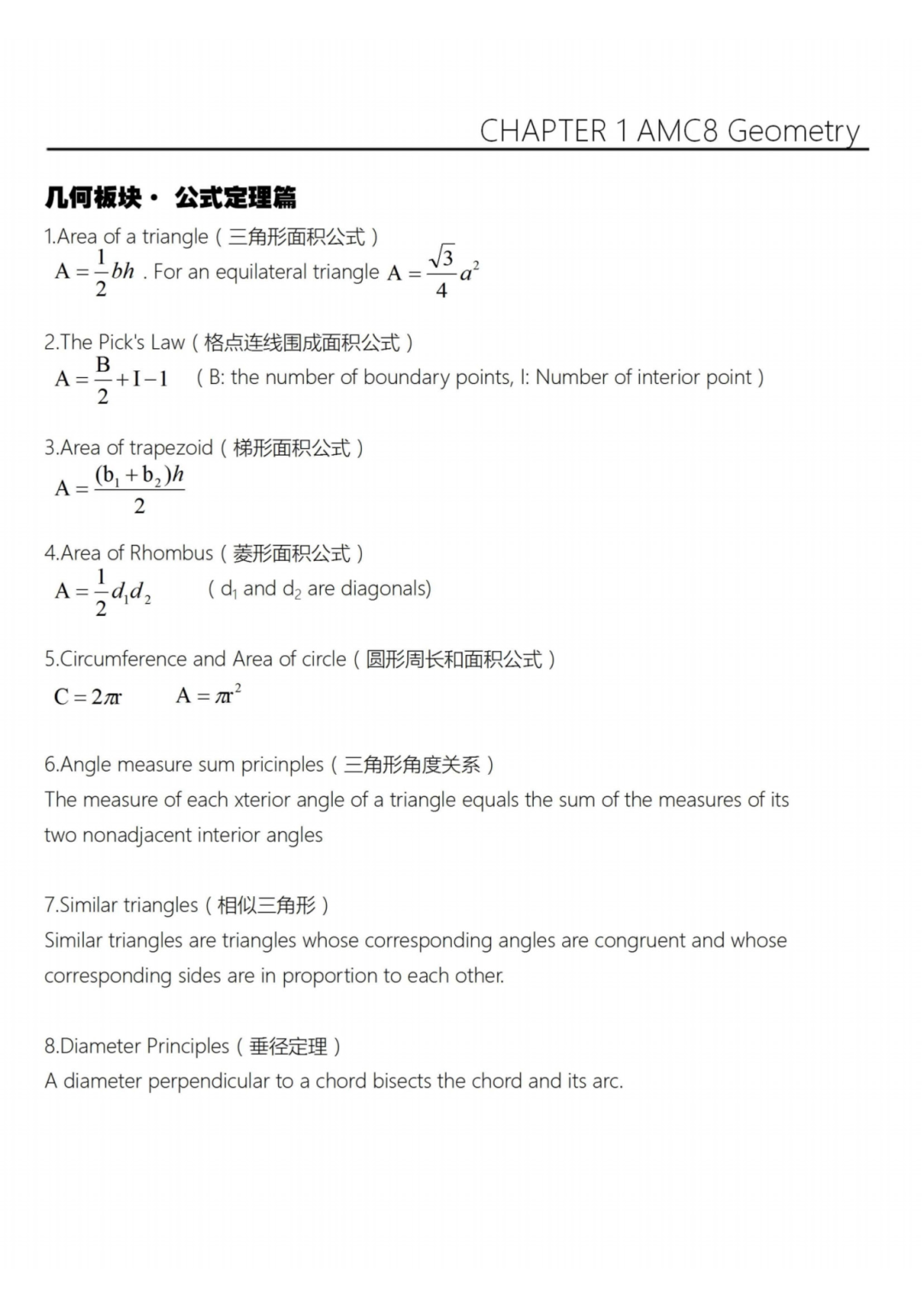 下图是AMC8考点范围:代数;几何;数论;组合,四大部分