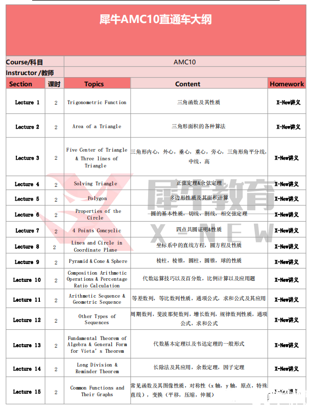 针对2024年参加AMC10竞赛的考生,犀牛教育特地开设了AMC10竞赛培训课程,无论学生是否是零基础还是有一定基础,都可以通过犀牛AMC10培训课程,来进行系统的学习,强化提升!