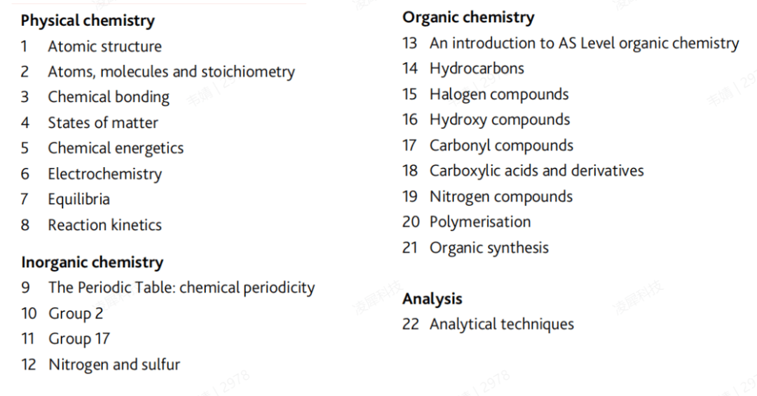 Alevel化学考什么?