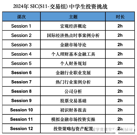 目前2024年SIC竞赛交易组和策略组课程热报中!SIC培训课表具体如下