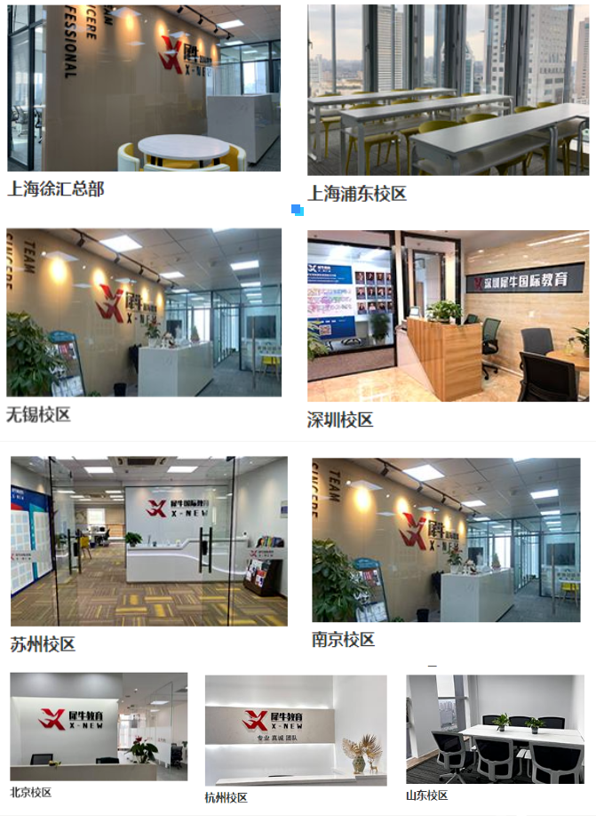 目前我们已在上海、北京、广州、深圳、苏州、杭州、南京、青岛、无锡、合肥、武汉、成都等多个城市开设校区,致力于为准留学生家庭提供全方位升学服务。
