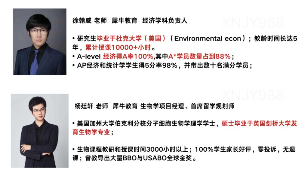 犀牛国际教育(X-NEW)的教师团队功底扎实,国际教育领域经验丰富,由清华大学、北京大学、复旦大学、上海交通大学、芝加哥大学、纽约哥伦比亚大学、莱斯大学、墨尔本大学等美国TOP30.英国G5的国内外一流大学的博士、硕士背景的老师组成。