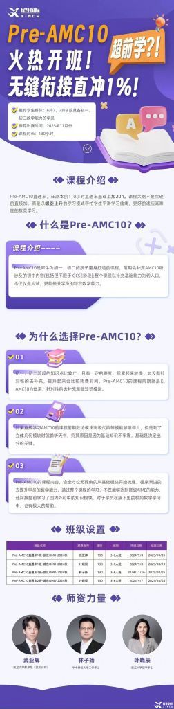 建议学生可以规划一个长期的备考周期,有精力的话可以和课内一同进行,或者长线备考强化基础知识,逐步提高,这样还能帮助到新学期校内数学,同时备考AMC8竞赛。