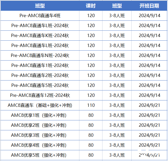 5-6年级:AMC8基础班,AMC8强化班,AMC8冲刺班