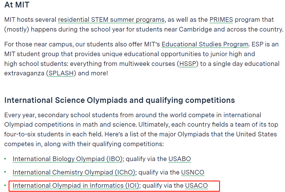 在众多名校的STEM申请中,USACO都是一项不可或缺的背景。其重要程度甚至可以比肩AMC在理工科申请中的重要性。STEM教学能力领先的MIT,就将USACO赛事放进了官方推荐竞赛中。