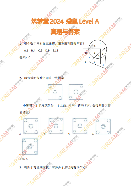考试题型:多项选择题,袋鼠数学竞赛考试题目根据年级不同设置也各不相同。1-4年级 (Level1-2)为24道题,5年级以上(Level3-6)为30道题。