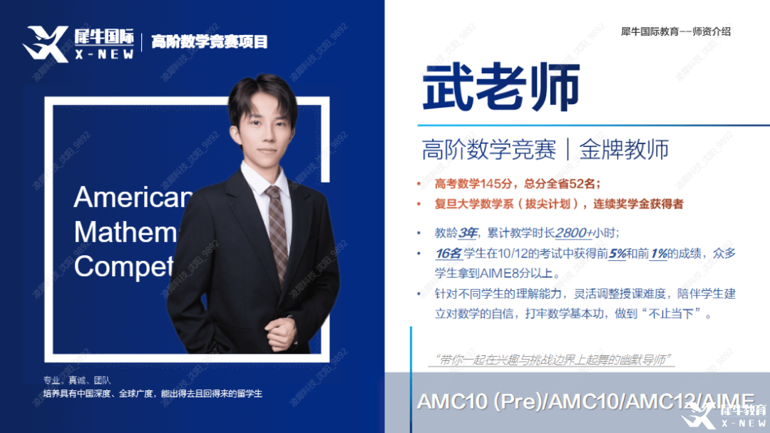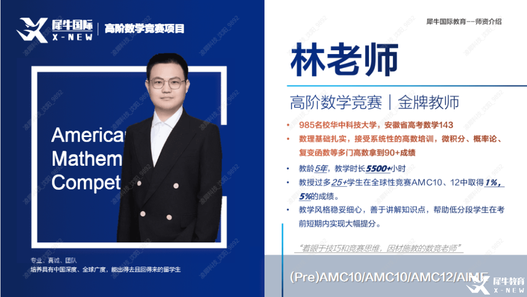 针对参加AMC12数学竞赛的同学们,犀牛也开设了AMC12竞赛培训班,包含多种班型,可适合不同基础、不同年级的学生。