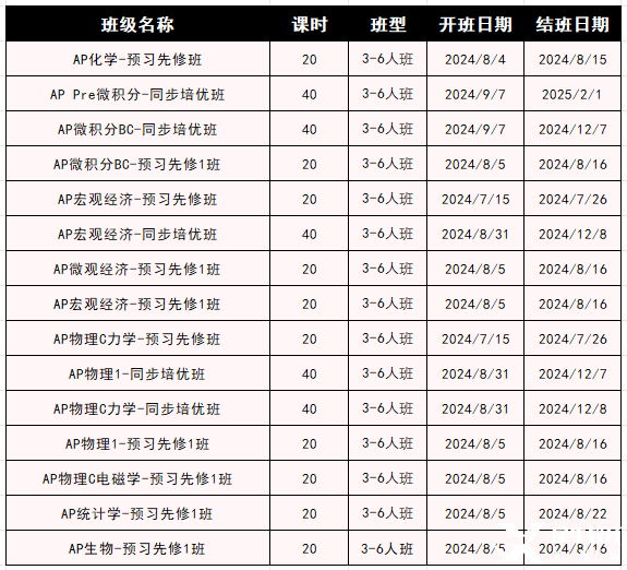 针对考纲、教科书上的例题以及历年AP考试真题进行总结,通过真题训练以及解题精讲,提升学生对考试题型的熟练程度以及对解题速度,达到短期内快速提分的效果。